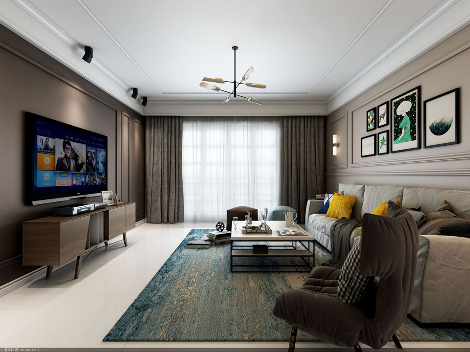 【華新山水居】美式躍層客餐廳效果圖